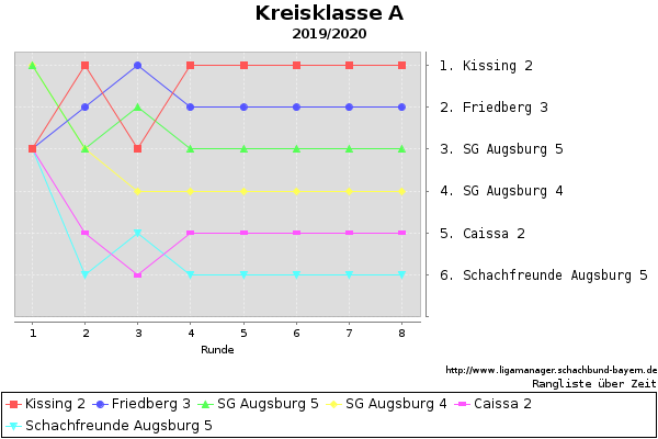 Die Grafik zeigt den zeitlichen Verlauf der Platzierungen einer Mannschaft an.