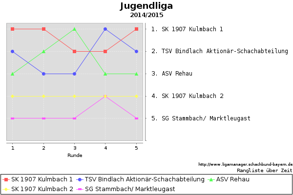 Die Grafik zeigt den zeitlichen Verlauf der Platzierungen einer Mannschaft an.