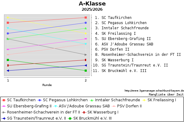 Die Grafik zeigt den zeitlichen Verlauf der Platzierungen einer Mannschaft an.