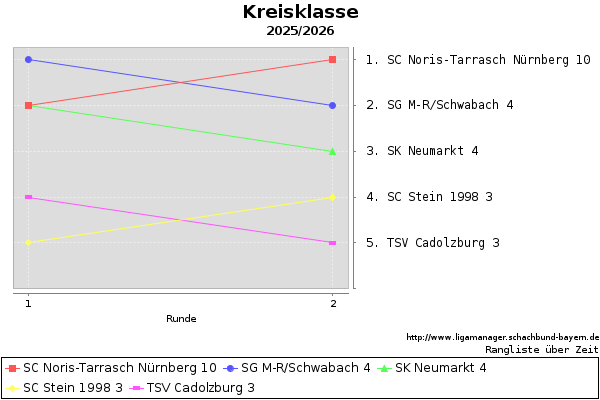 Die Grafik zeigt den zeitlichen Verlauf der Platzierungen einer Mannschaft an.