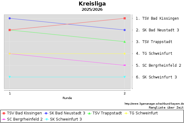 Die Grafik zeigt den zeitlichen Verlauf der Platzierungen einer Mannschaft an.