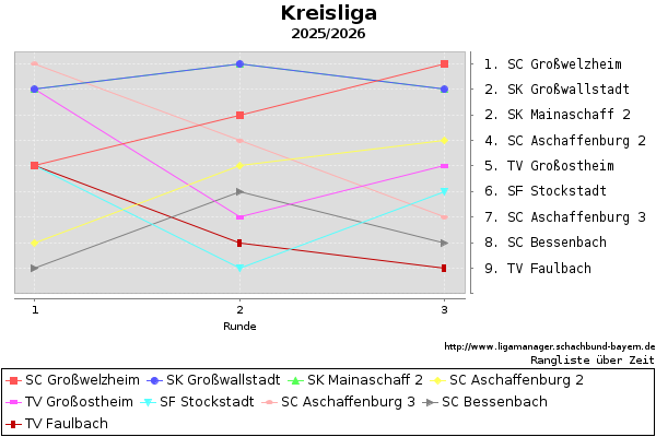 Die Grafik zeigt den zeitlichen Verlauf der Platzierungen einer Mannschaft an.